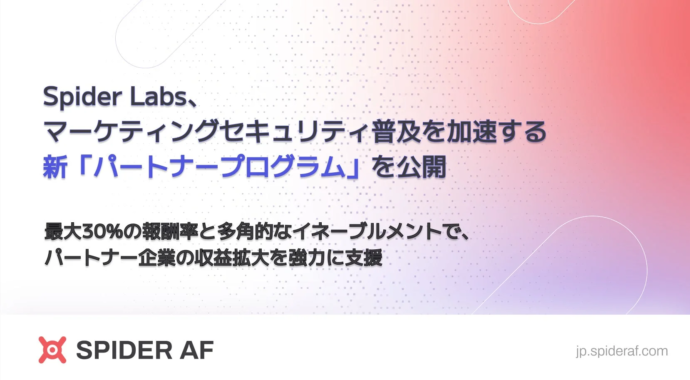 Spider Labsは、2025年8月にデジタル広告の不正対策から、マーケティング全体の安全と成果を最大化する「マーケティングセキュリティプラットフォーム」へと進化しました。現在の企業のマーケティング活動では、不正クリック、不正リード、不正転売といったリスクが顕在化しており、これらによる見えない損失から企業を保護することが喫緊の課題となっています。本プログラムは、これらの課題をパートナー企業と共に解決し、安心・安全なマーケティング環境を構築することを目的としています。