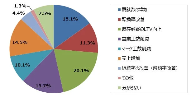 導入前に期待した成果が「あまり得られていない」と回答した層に対し、成果不振の最大の理由を尋ねたところ、「ツールの問題」を挙げた回答者は0%でした。最多は「人材・スキルの問題」で41.4%、次いで「社内体制の問題」「営業連携の問題」がそれぞれ17.2%と続き、ツールの機能そのものよりも、運用体制や人材、戦略設計に課題があることが浮き彫りになりました。